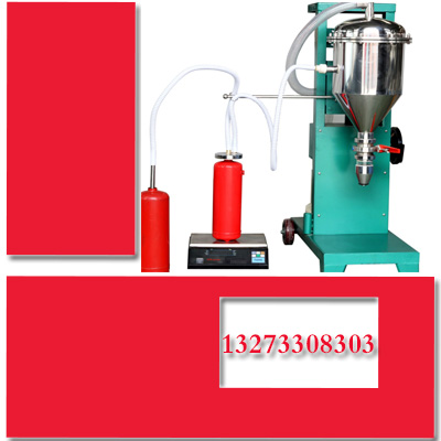 灭火器干粉灌装通常在真空条件下进行,因此装入瓶内的干粉比较密实,不利于使用时的顺利压出,为了增加干粉疏松度,需要向完成灌装的瓶体内充入一定量的空气。传统充气方式一般为人工操作,先将灭火器移动到充气附近,使灭火器充气口对准充气头,然后按压灭火器把手手柄打开喷粉阀门进行充气。上述操作动作繁琐,劳动强度较大,充气效率较低,与干粉灭火器自动化灌装生产线不相适应。