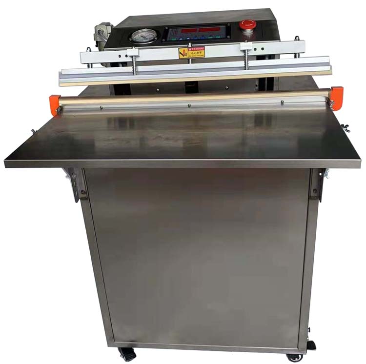本系列外抽式真空包装机具有抽真空速度快,封口干净,平整,牢固,具有真空及充气双重功能;整机电路由“PLC”可编程控制器控制,性能稳定;海棉状硅膠条,确保抽气后密封良好,可充入氮气或其它气体包装;不锈缸工作台,根据包装物的大小,任意调整高低;可任意移动工作地点;简易型储物盒,存放真空包装袋或常用备件。