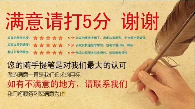 3.客户对产品颜色或款式的指定,我们会尽力满足,但不能100%保证。如因颜色或款式不相符将不予以退换货。